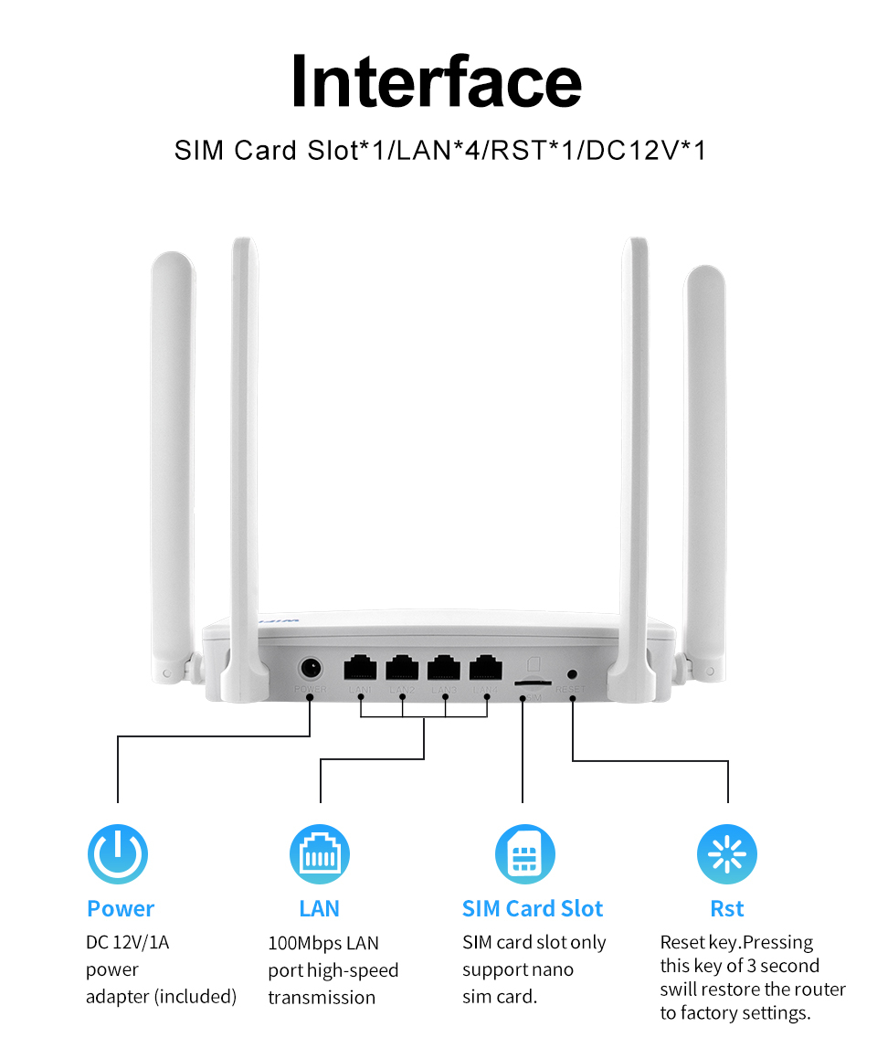 Conținut Pachet: Router 4G × 1, Adaptor 12V × 1, Manual × 1
