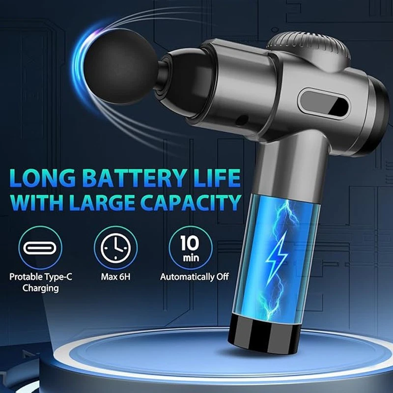 Aparatul de masaj muscular tip pistol este conceput pentru a oferi relaxare profundă și recuperare musculară eficientă după efort fizic sau activități solicitante. Tehnologia de masaj percutant prin vibrații ajută la stimularea circulației sanguine, reducerea rigidității musculare și ameliorarea tensiunii acumulate în corp.